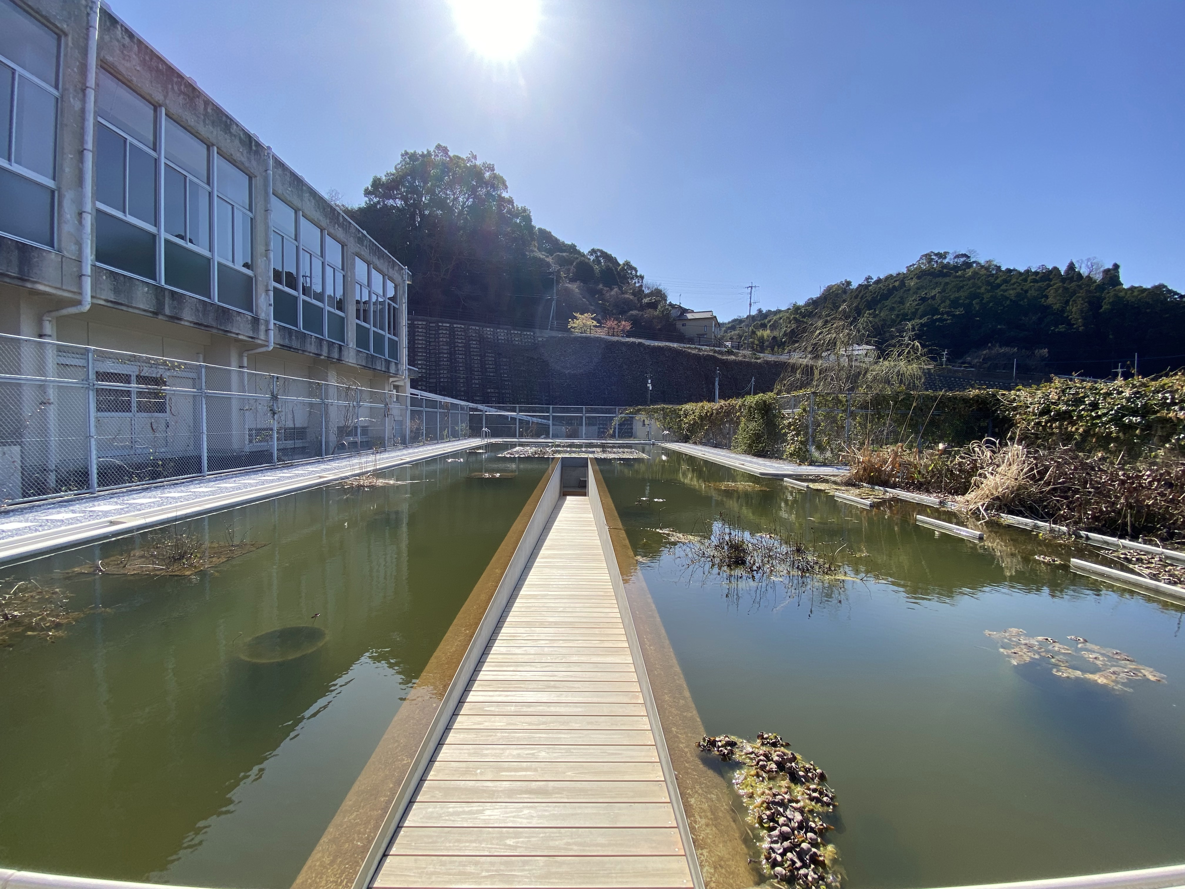 今回ご紹介する「入魂の宿」は熊本ゆかりの文筆家、石牟礼道子の詩「入魂」に作品制作の着想を得て、旧赤崎小学校のプールをリノベーションし宿泊可能(期間限定)な大型屋外作品となっています。