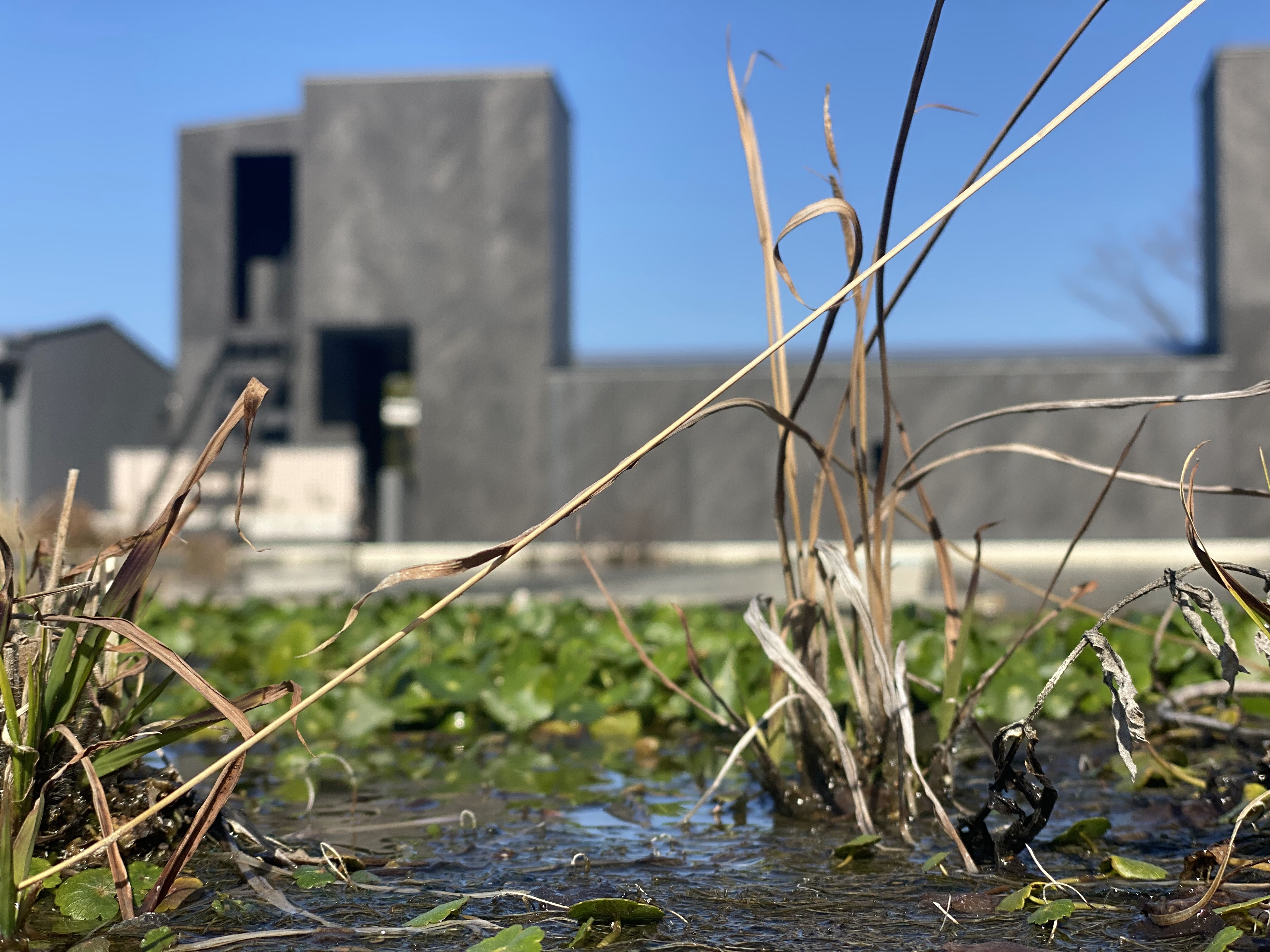ここは植物の力を使って水を循環させるビオトープで、水生植物や小さな生き物たちを同じ目線で楽しむことができます。