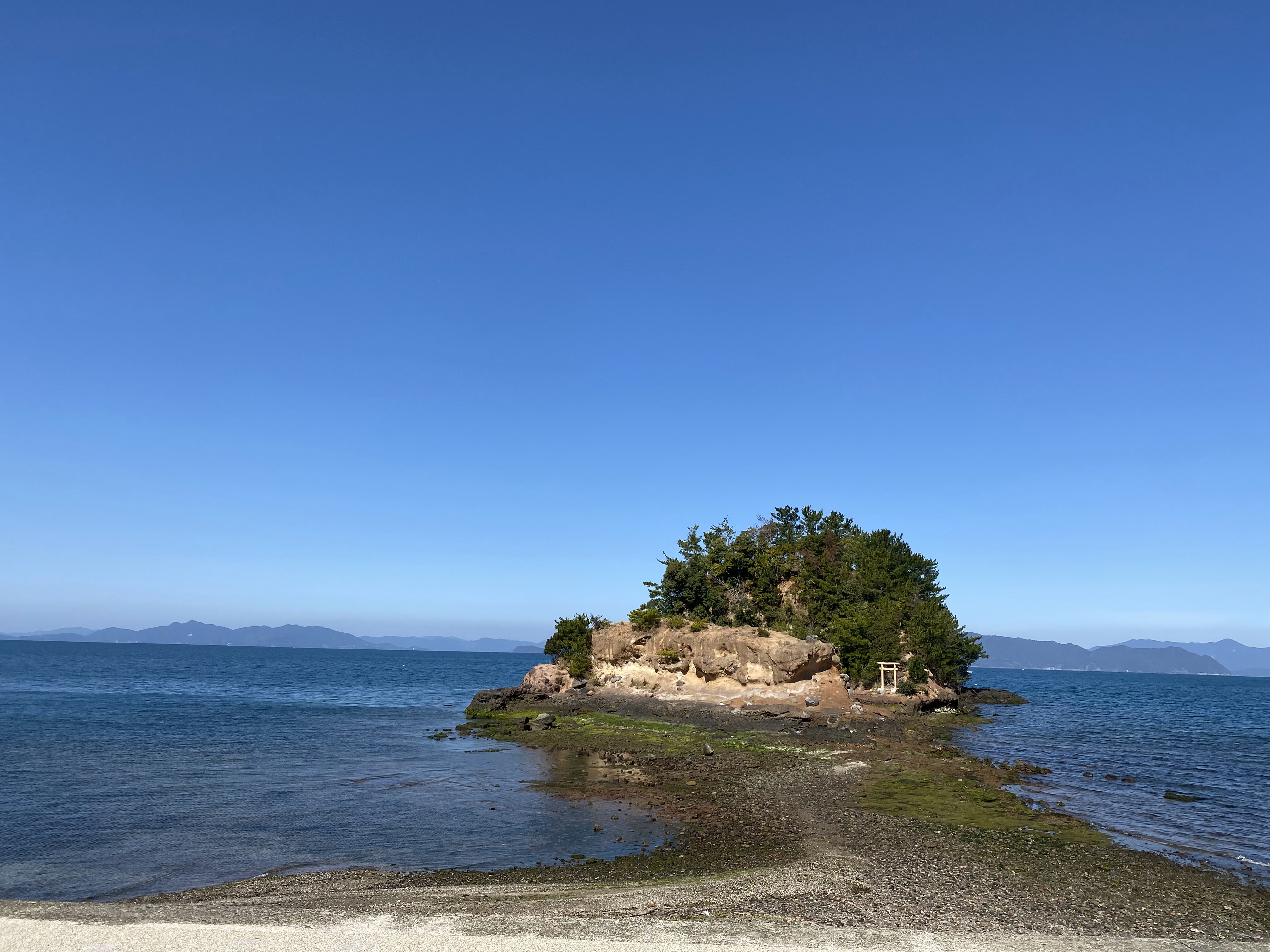 裸島、弁天島、黒島の3つの島を総称した「赤尾島」が、ちょうど干潮時だったので道ができていました。
