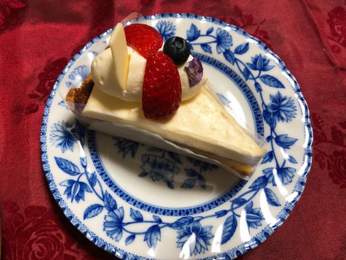 こちらはレアチーズタルト。ほんのりレモン風味でナチュラルなチーズ風味がお子様でも食べやすそうなケーキです。