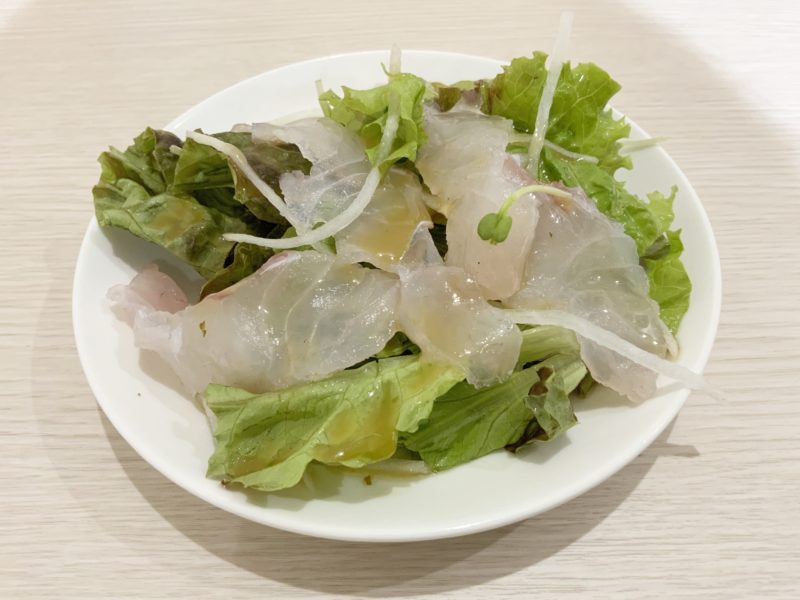 まずはサラダから。もうおわかりかと思いますが、田崎市場で新鮮な魚を仕入れて、その日見つけた良い品をマリネにして乗せています。
