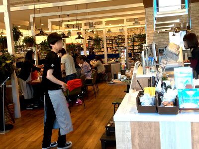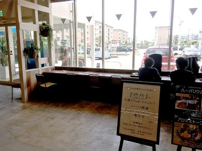 TSUTAYA田崎店の右端に店舗スペースがあります。ウッド調でイタリアンな雰囲気の内装です。