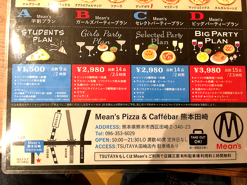 【閉店】TSUTAYA熊本田崎店のピザ店「Mean’s Pizza & Caffébar」で1200円の“ピッツァ&ポテト食べ放題”開催中!【5月6日まで】