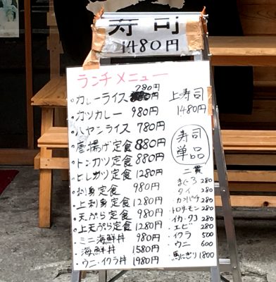 表に掲げられていた料理メニューも一部で、店内に入ればまだ他にもお料理の数が紹介されています。