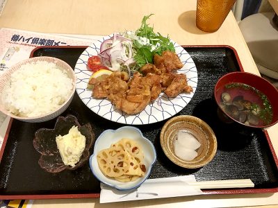 ランチは「唐揚げ定食」を頼んでみました。