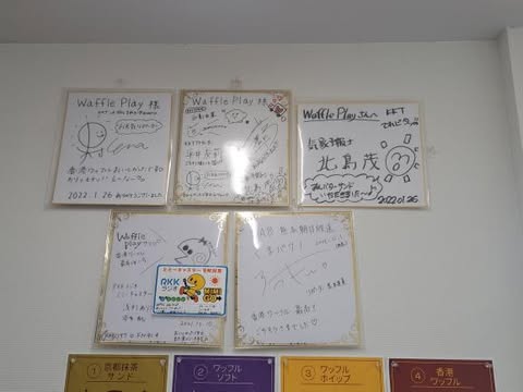 香港ワッフルのメニューは4種類あり、生地(京都抹茶・さつまいも・チョコ・オリジナル)により値段が変わります。