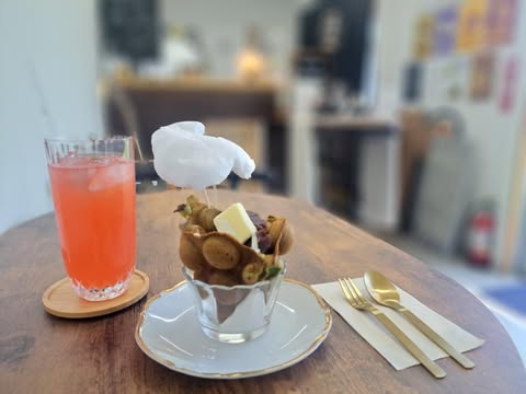 「香港ワッフルは焼きたてにこだわっていたため、お客様にお時間をいただくことも多く、 雪の中や大雨、猛暑の日に外でお待ちいただき、立ったまま召し上がっていただく光景を何度も見てきました。 そのたびに『いつか、ゆっくり座って楽しめる場所をつくりたい』と思うようになりました。」と語る店主。
