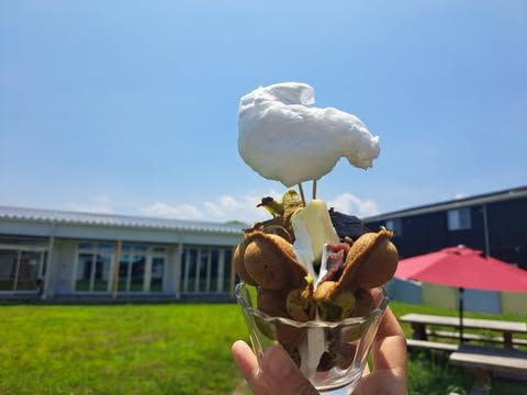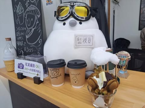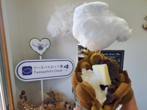 「twosupilot」のメニューの中で京都抹茶サンド、ワッフルソフト、ワッフルホイップには綿あめでできた雲を浮かべているそうです。