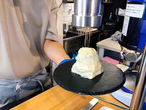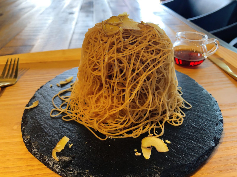 上から和栗ペーストをかけている様子を目の前で見れる楽しい。