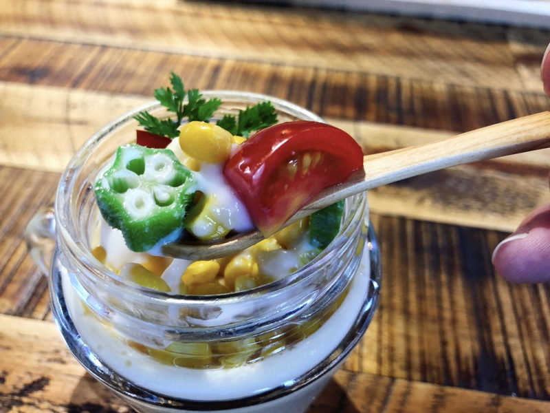 オクラやトマト、コーンと茶碗蒸しの相性が抜群!