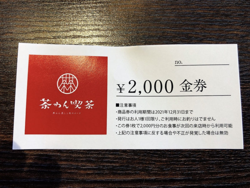 「茶わん喫茶」で2000円以上のお食事をすると100名様限定で次回から使える2000円の金券をもらえるそうです!