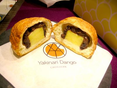 通常のいきなりだんごは、モチモチした餅生地が特徴ですが、この焼なり団子はクロワッサン生地!