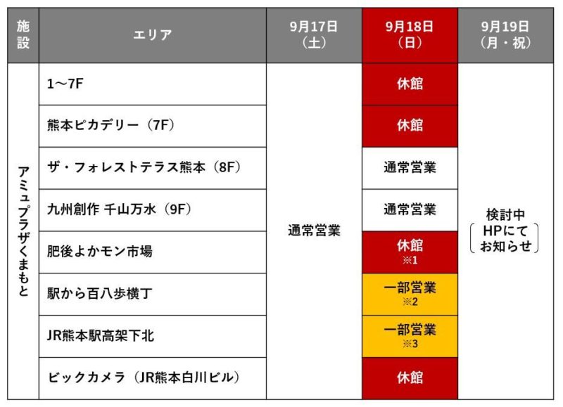 アミュプラザも鶴屋もお休み