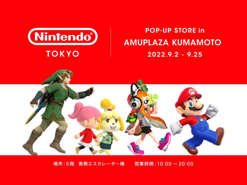 Nintendo TOKYO POP-UP STORE in AMUPLAZA KUMAMOTO っていうのが、9月2日(金)~25日(日)期間限定オープンしてるんすよねぇ。これ行きたい。