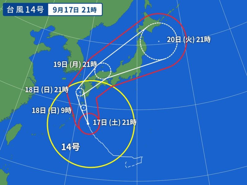 最強クラスと言われている台風14号。