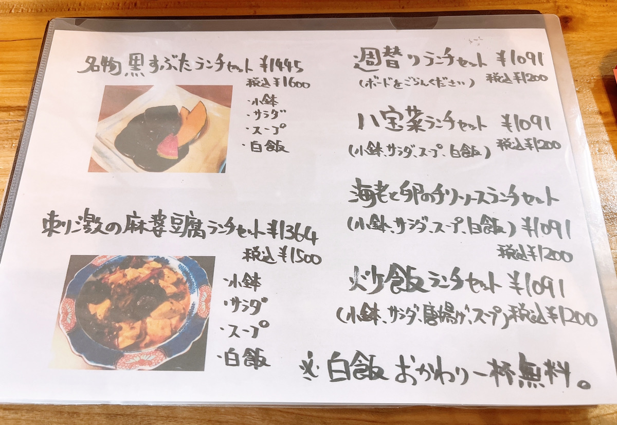 ランチメニューを見ていきます。名物 黒すぶたランチに始まり、定番の人気メニューが楽しめるラインナップです。