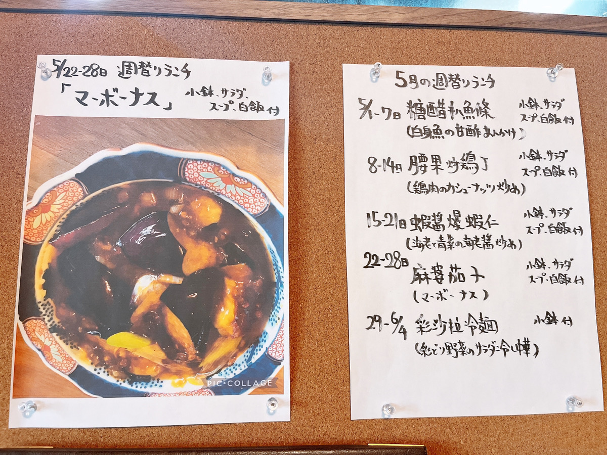 週替わりランチは1ヶ月分をボードでチェックすることが出来ます。