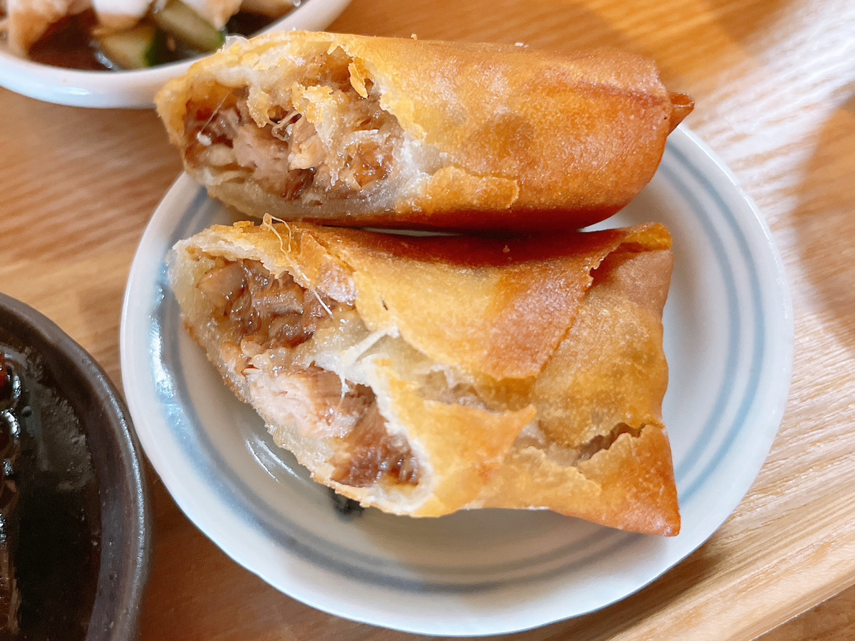 揚げ点心は、春巻きの中に豚の角煮がたっぷり詰まっていました。ほんのり八角を感じます。