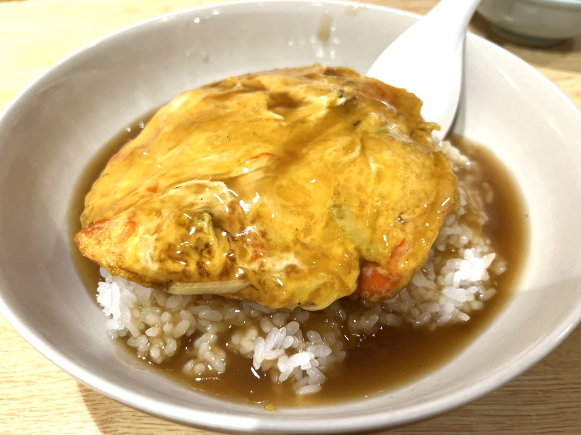カニの風味が濃い。カニ玉にはしっかりと味がついていて美味。これはご飯が欲しくなりますね。そして、餡は優しい味。醤油をベースとした味付けで、カニ玉の味に旨味をプラスしてくれています。