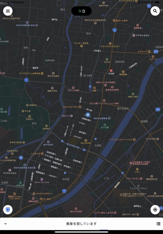 道中知り合ったベテラン風の配達員さんに「南熊本のワンダーシティ辺りも多いよ~」と教えてもらいました。行ってみましたが1度も鳴りませんでした。やっぱり時間帯が悪いようです…。再び街に戻ります。