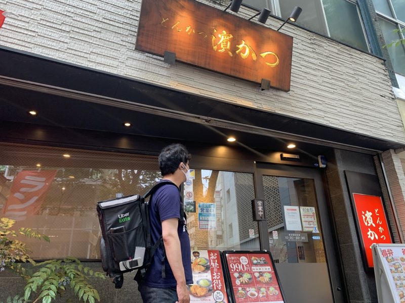 次は濱かつでした。Uberやってるんだ…すぐに商品を渡してもらえ、早速配達!