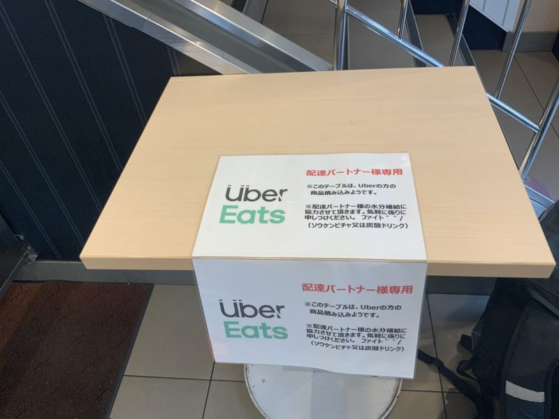 中にはUberEats配達員のためのテーブルも用意してありました。いたれりつくせり。