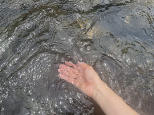 川はこの透明度。美しい。冷たくて気持ちいいです。