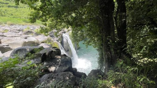 【菊池市】静かな河原が突然魅せるダイナミックなブルー ~菊池市重味 産さん滝~
