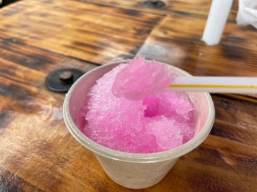 玉子や海苔、油など、原材料も高騰していて大変とのことですが、ポークたまごおにぎりも、かき氷などのほかのメニューも、とてもリーズナブルな価格で販売されています。今後、大型ショッピングセンターにも入る予定だそうで、これからも楽しみです。