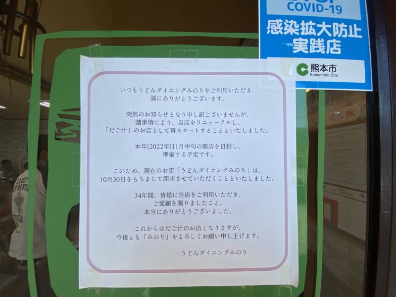 【閉店情報】34年間ずっと人気のうどんダイニング「みのり」が10月末で閉店‼