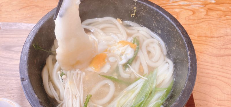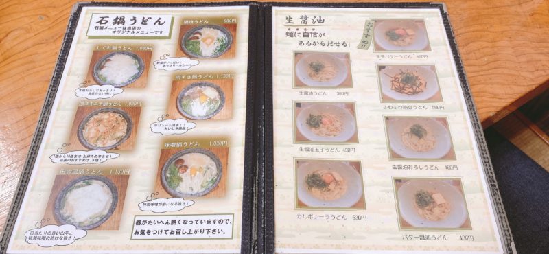 2ページ目は石鍋うどん。なべ焼きうどんのようにグツグツで出てきます。
