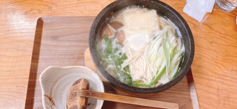 自家製の手打ちうどんで、優しい出汁の効いたスープが身体にしみます。もっと寒い時に食べたかった。
