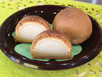 大牟田を発祥とした饅頭で、皮の部分をカステラと同じ材料で作ってあります。中はサラッと解ける白あん。