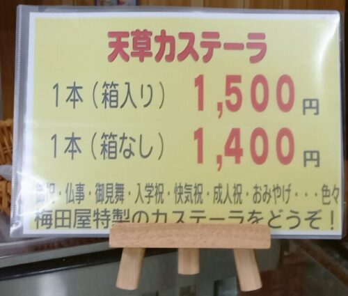 「ここのカステラは上天草の隠れた名産品だからぜひ味わって!」と激推しされた「梅田屋菓舗」。