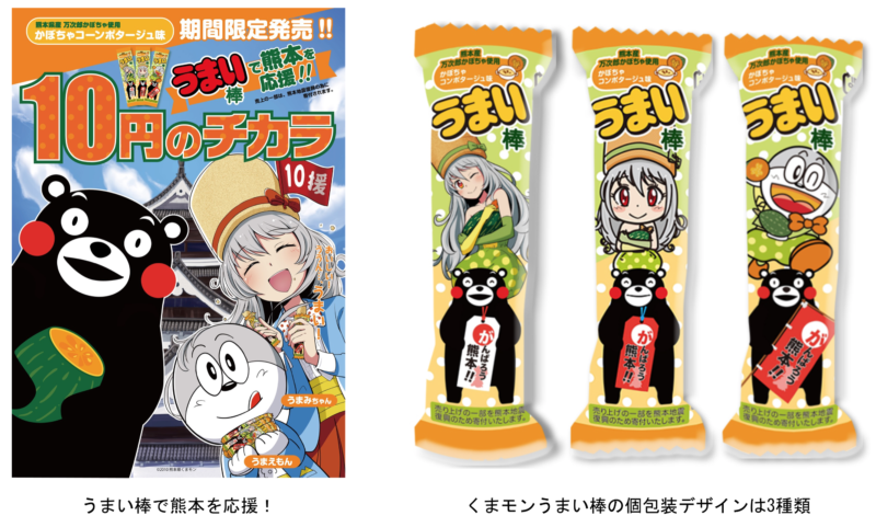 そこで、関連商品発売だけでなく、うまい棒とくまモンの熊本復興支援プロモーションを展開予定!