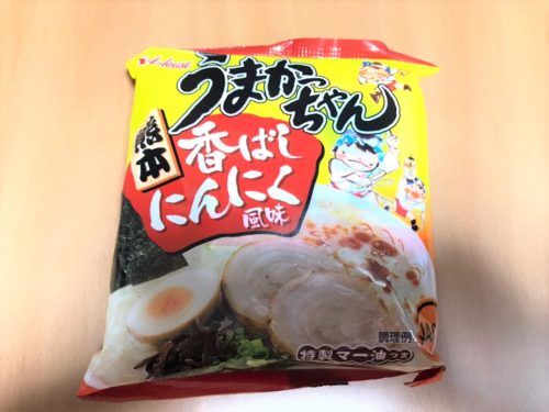 こちらが、「うまかっちゃん」の熊本香ばしにんにく風味。近隣のスーパーなどではなくなっていることが多く、大変人気の商品だと思われます(私調べ)。