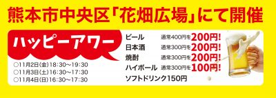前回も大盛況だった熊本の食の祭典!「熊本うまかもんサーカス」が、今年も11月2日(金)〜4日(日)の3日間、中央区の花畑広場で開催されます!