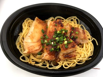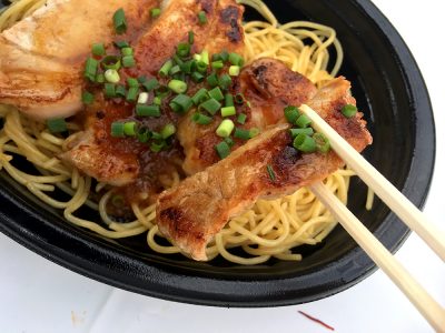 ポークステーキも美味しそうですが、焼きそば風に熱を通したパスタ麺が、肉とうまく絡んでまさに絶品の味わい!