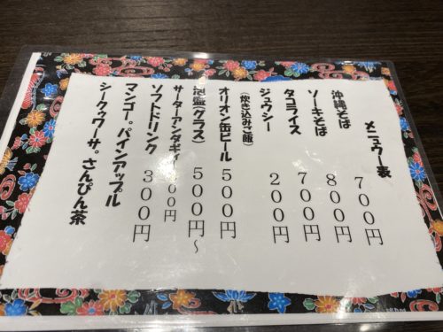 本日食べたソーキそば以外のメニューはこんな感じ。沖縄料理が並んでいます。