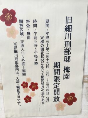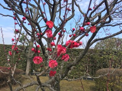 厳しい寒さもピークを過ぎ、日に日に過ごしやすくなってきた今日この頃。熊本では、2月22日に梅の開花が観測されました。平年より22日遅く、昨年より16日遅い開花となりました。現在、旧細川刑部邸の梅園が特別開放中とのことで、梅の花を楽しんできました。