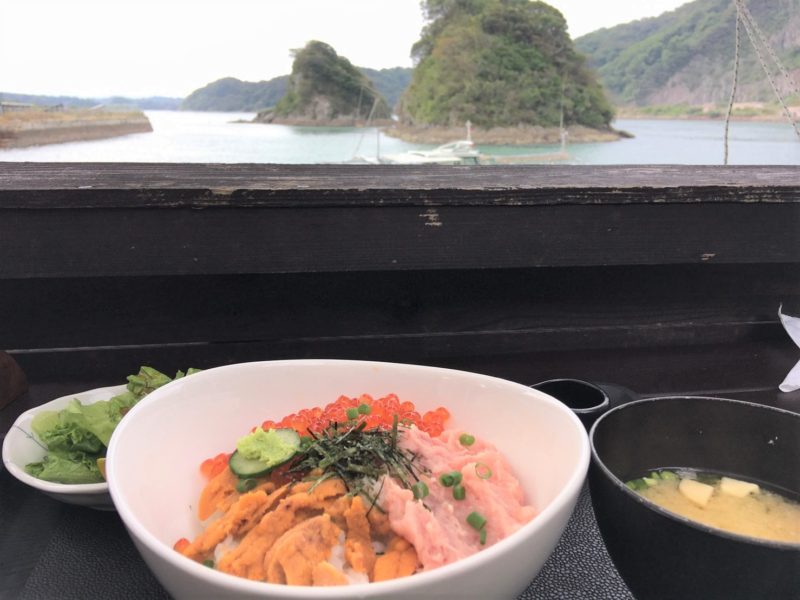 地元でとれた魚を思いっきり食べたいという方には、刺身やおまかせの魚料理がついた魚づくし定食(前日までの要予約・1,300円)もあります。もともと、オーナーが釣ってきた魚を提供していたそうですが、不漁の際は、三角で獲れた魚を仕入れて作られているとのことです。