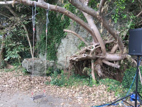 こちらのカフェは駐車場も広く、お庭には大きなアコウの木にかけられたブランコもあります。