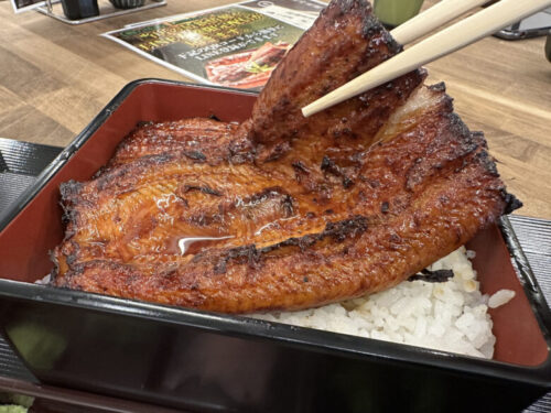 うなぎが重からはみ出しています。