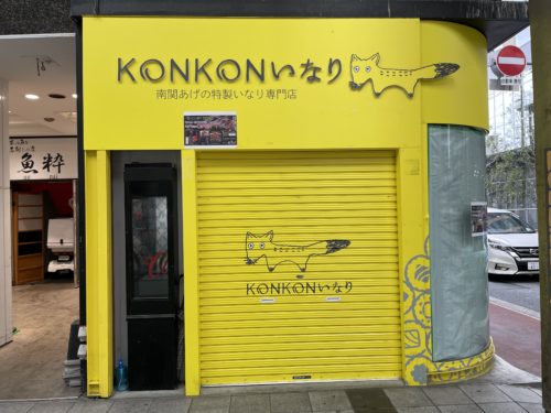 新市街に突如現れた、黄色いお店「KONKONいなり」。