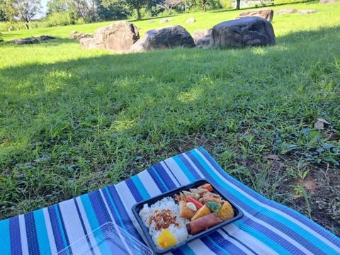 レジャーシートを敷いて自然の中でのんびりとお弁当をいただきます。