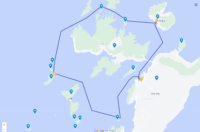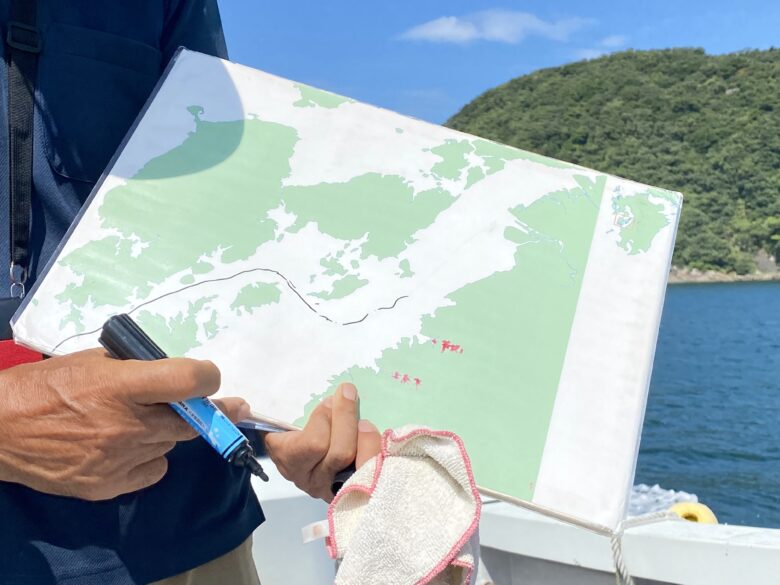 三宅さんが分かりやすいようにマップで通っている場所や見えてくる島を説明してくれます。
