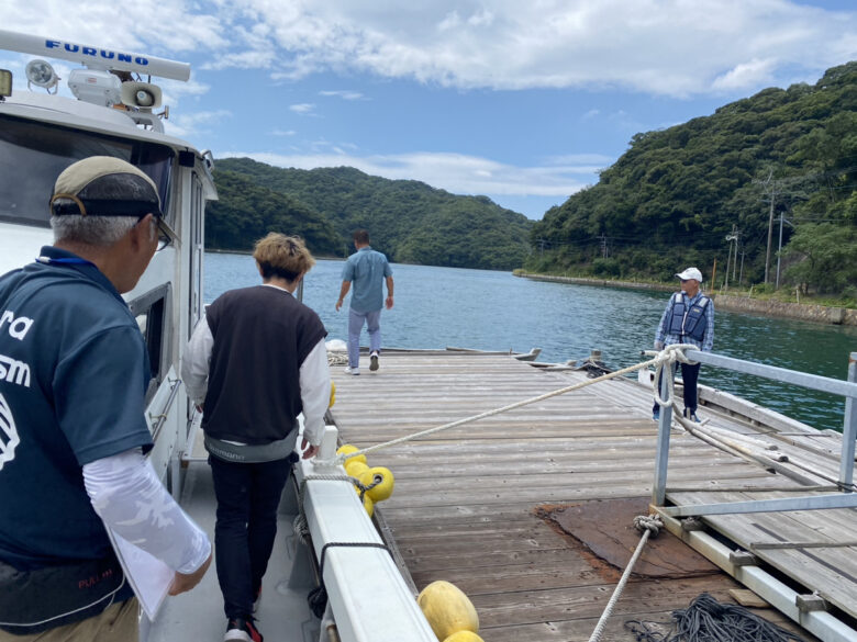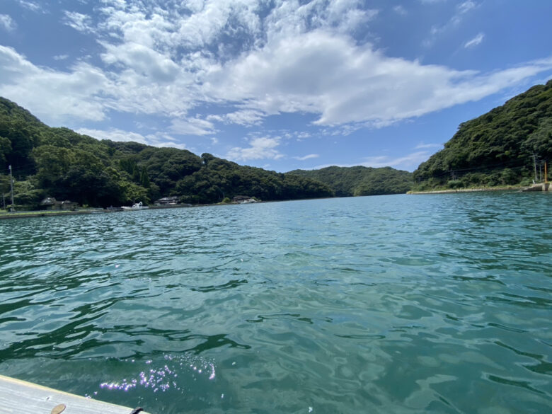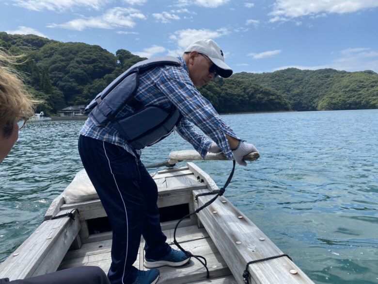 舟に乗り込み「舟かくし」までのんびりと海の旅に出発。