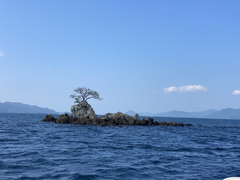 大小さまざまな無人島を通過し見えてきたのは弁天島。