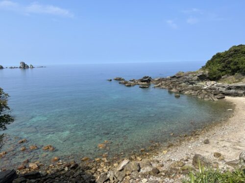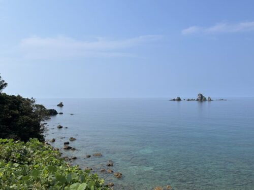 遠くに見える岩礁は「大ヶ瀬(おおがせ)」。「小ヶ瀬(こがせ)」も南側にあります。