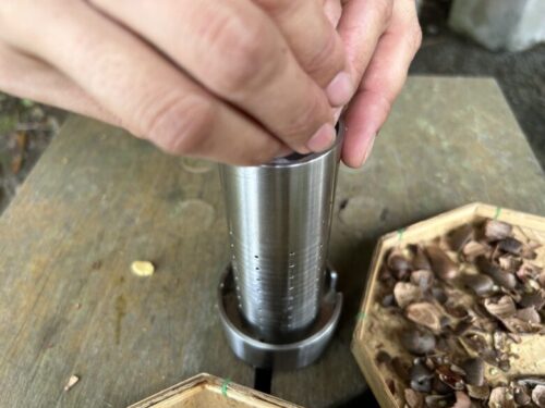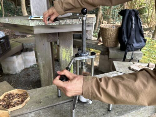 さていよいよ椿油の生搾り体験!